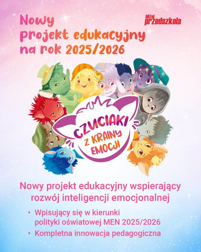 Opis: Ogólnopolski projekt edukacyjny mający na celu rozwój inteligencji emocjonalnej u dzieci. Poprzez spotkania z sympatycznymi postaciami – Czuciakami, które reprezentują różne emocje, dzieci uczą się rozpoznawać, nazywać i bezpiecznie regulować swoje uczucia, rozwijać empatię oraz budować pozytywne relacje z rówieśnikami. Projekt dostarcza materiałów takich jak bajki, piosenki i aktywności, a także zachęca do tworzenia własnych książeczek projektowych i "Wysp Emocji".